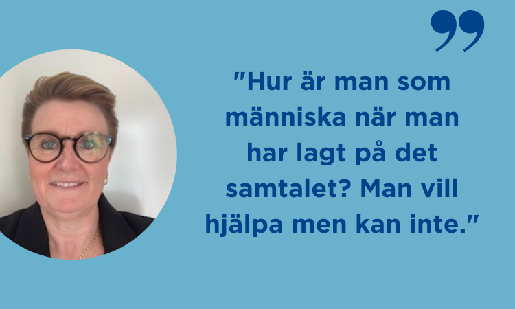 – Vi måste ta emot samtalen, men då behövs också tid att bearbeta. En kort avstämning — hur stöttar vi varandra? Ibland behöver man bara ta fem minuter med en kollega för att kunna reflektera. Sedan behöver cheferna också få stöd och vissa arbetsuppgifter som pausas, men det är business as usual, iallafall just nu.